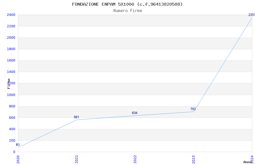 | Anno | Firme | Importi | Media | Naz. | Reg. | Prov. | Comu. |