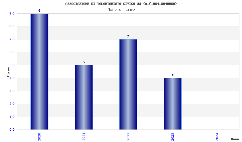 | Anno | Firme | Importi | Media | Naz. | Reg. | Prov. | Comu. |