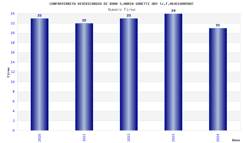 | Anno | Firme | Importi | Media | Naz. | Reg. | Prov. | Comu. |