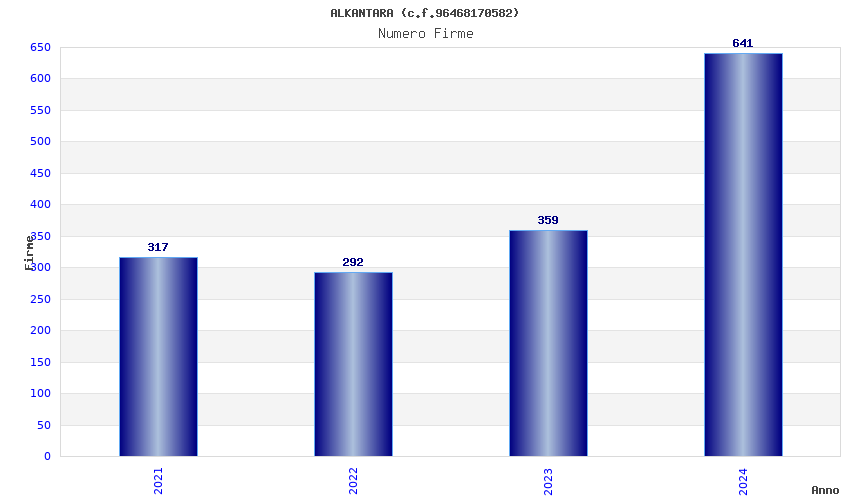 | Anno | Firme | Importi | Media | Naz. | Reg. | Prov. | Comu. |