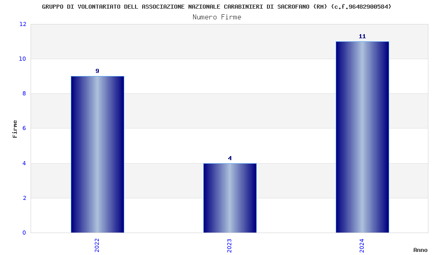 | Anno | Firme | Importi | Media | Naz. | Reg. | Prov. | Comu. |