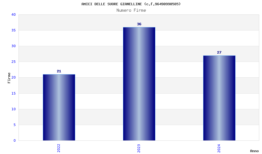 | Anno | Firme | Importi | Media | Naz. | Reg. | Prov. | Comu. |