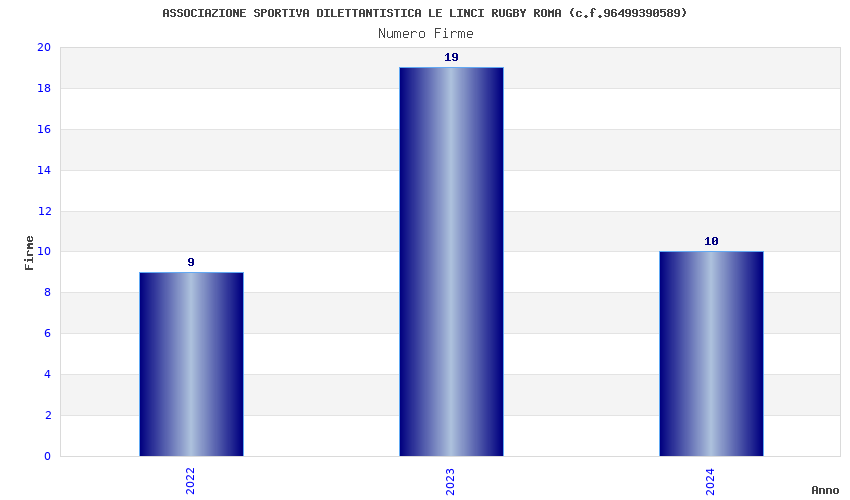 | Anno | Firme | Importi | Media | Naz. | Reg. | Prov. | Comu. |