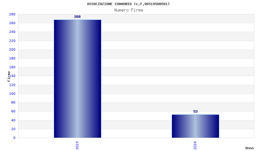 | Anno | Firme | Importi | Media | Naz. | Reg. | Prov. | Comu. |