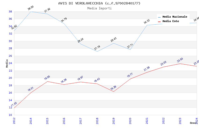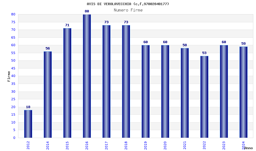 | Anno | Firme | Importi | Media | Naz. | Reg. | Prov. | Comu. |