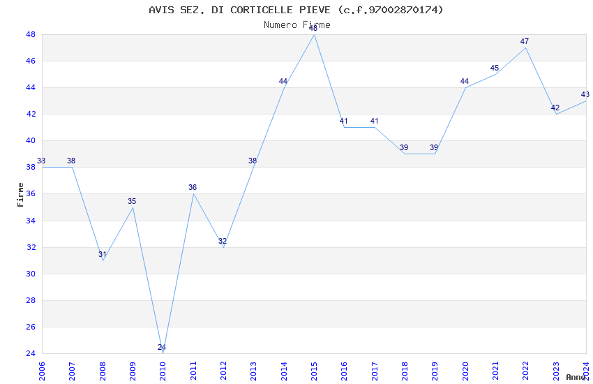 | 2024 | 43 | 1.084,16 | 25,21 | 35.960 | 7.261 | 946 | 6 |