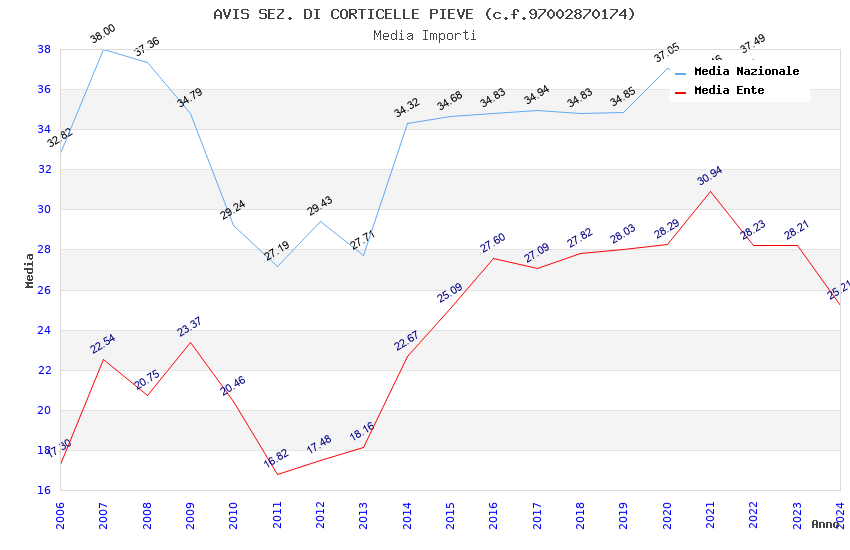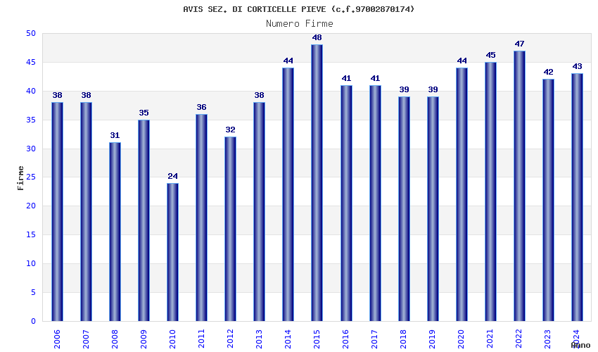 | Anno | Firme | Importi | Media | Naz. | Reg. | Prov. | Comu. |