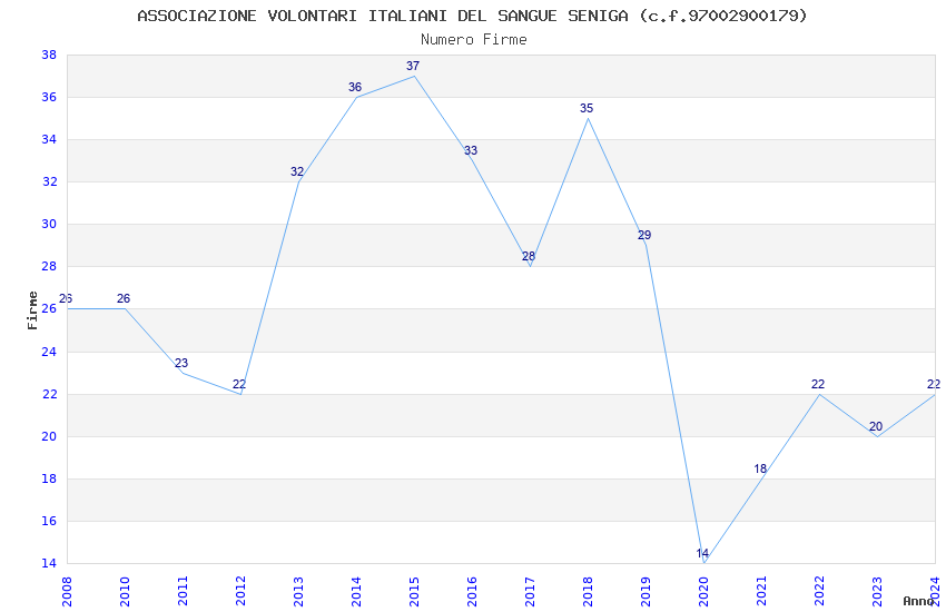 | 2020 | 14 | 364,57 | 26,04 | 51.038 | 10.253 | 1.379 | 3 |