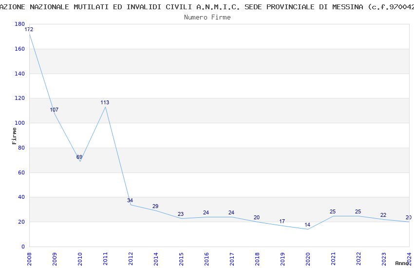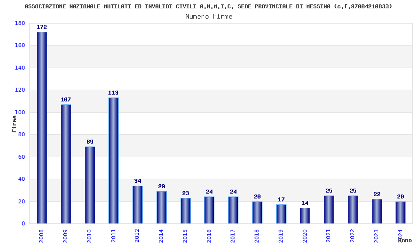 | Anno | Firme | Importi | Media | Naz. | Reg. | Prov. | Comu. |