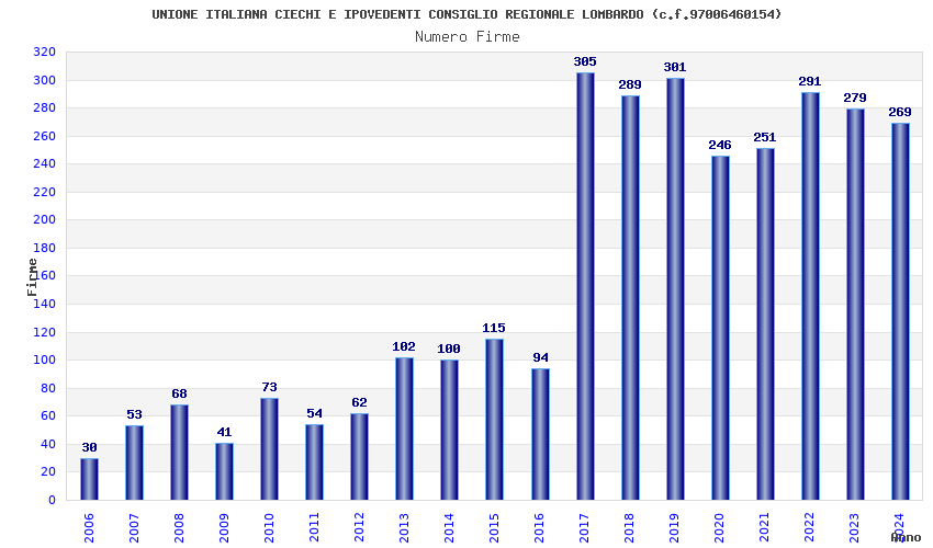 | Anno | Firme | Importi | Media | Naz. | Reg. | Prov. | Comu. |