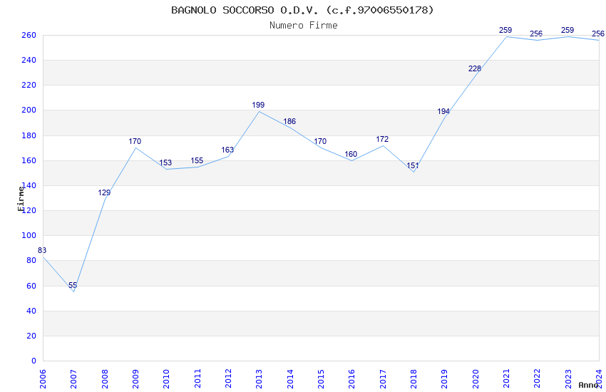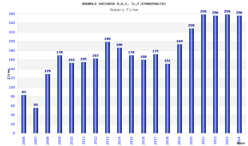 | 2024 | 256 | 6.621,33 | 25,86 | 7.969 | 1.832 | 213 | 1 |