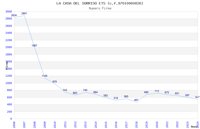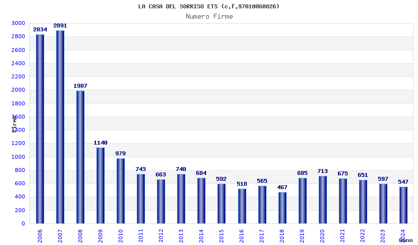 | Anno | Firme | Importi | Media | Naz. | Reg. | Prov. | Comu. |