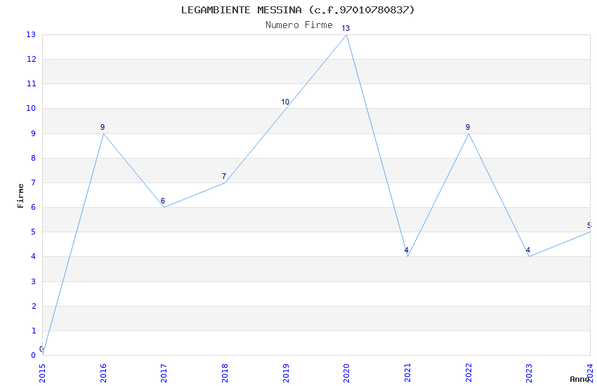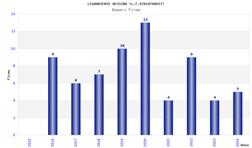 | Anno | Firme | Importi | Media | Naz. | Reg. | Prov. | Comu. |
