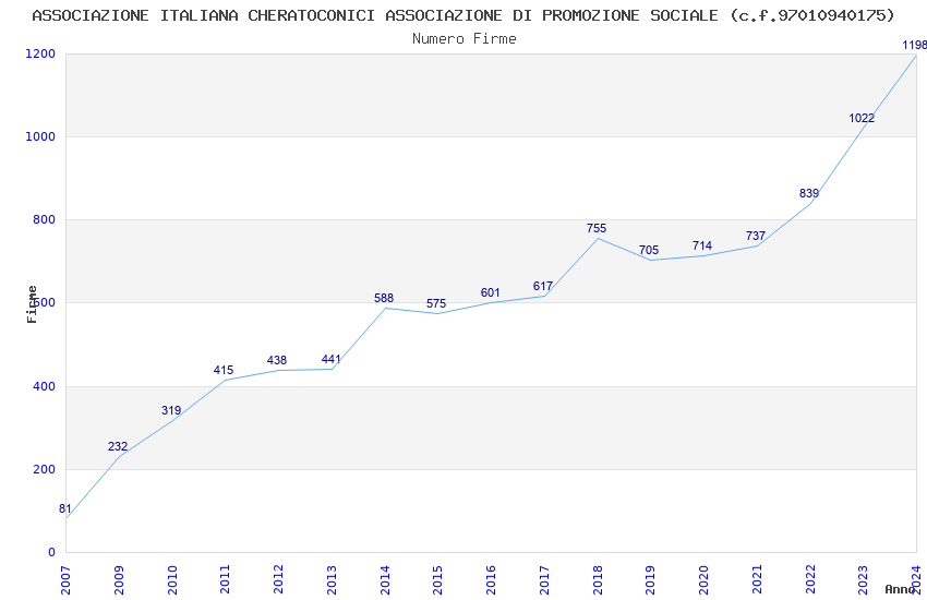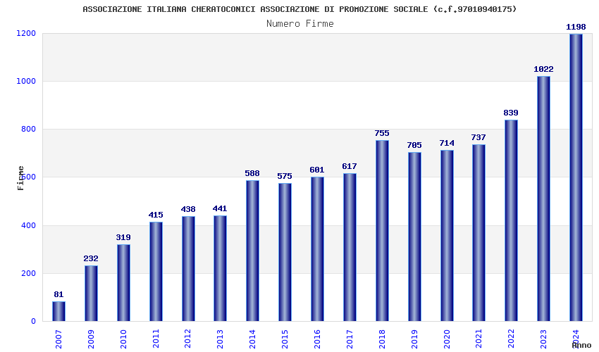 | Anno | Firme | Importi | Media | Naz. | Reg. | Prov. | Comu. |