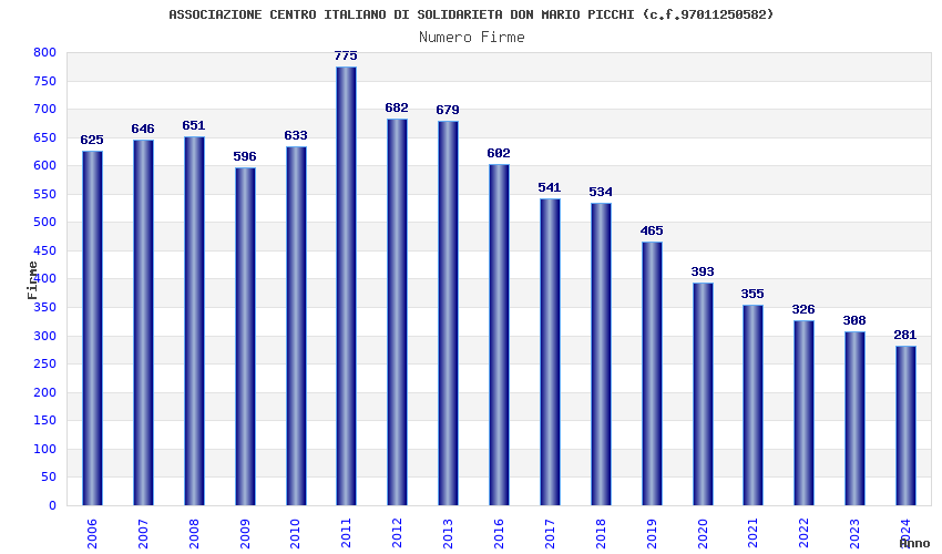 | Anno | Firme | Importi | Media | Naz. | Reg. | Prov. | Comu. |