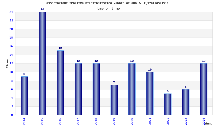 | Anno | Firme | Importi | Media | Naz. | Reg. | Prov. | Comu. |
