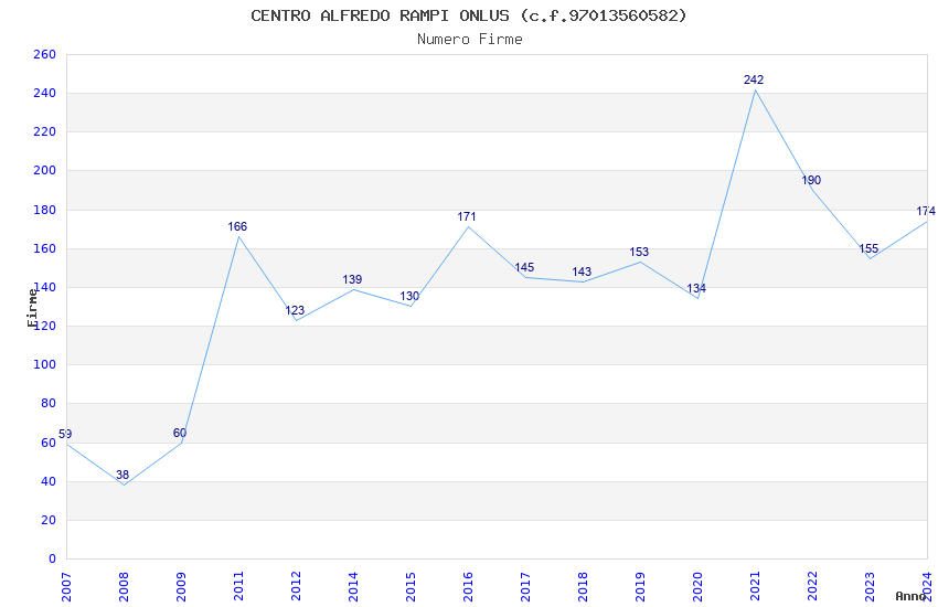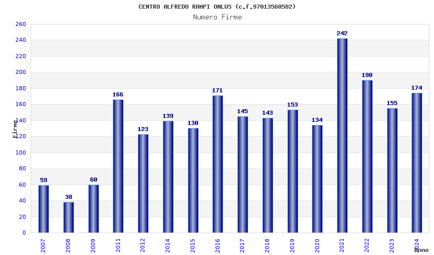 | Anno | Firme | Importi | Media | Naz. | Reg. | Prov. | Comu. |