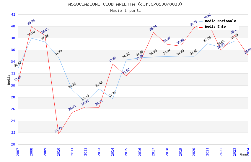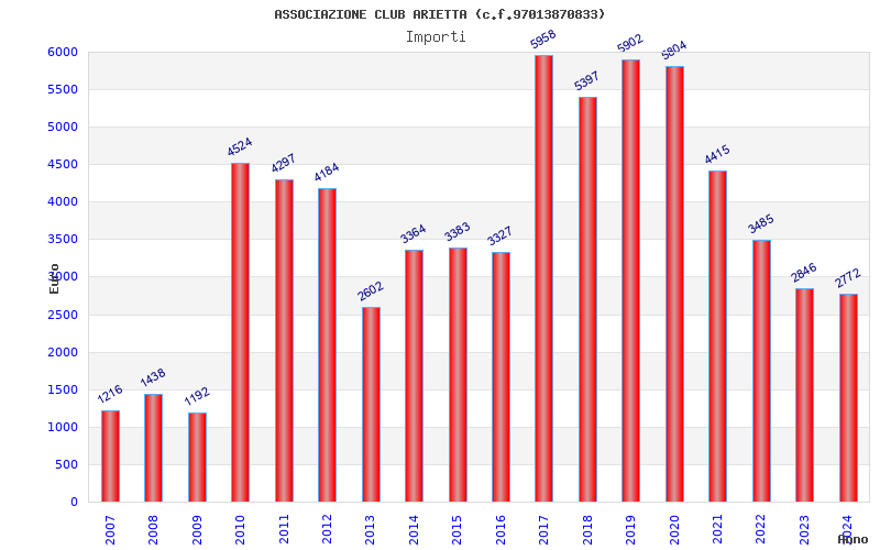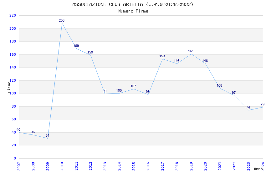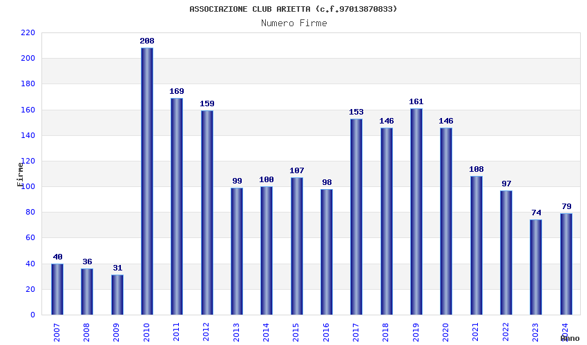 | Anno | Firme | Importi | Media | Naz. | Reg. | Prov. | Comu. |