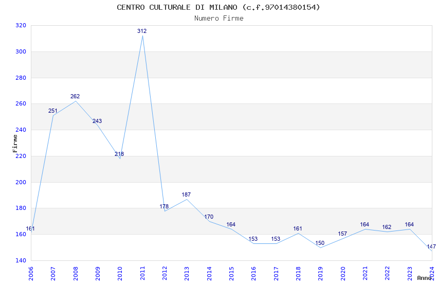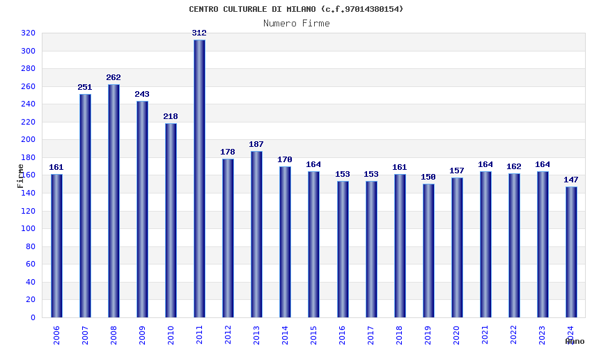 | Anno | Firme | Importi | Media | Naz. | Reg. | Prov. | Comu. |