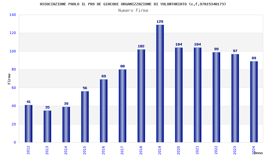| Anno | Firme | Importi | Media | Naz. | Reg. | Prov. | Comu. |
