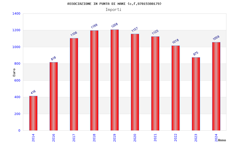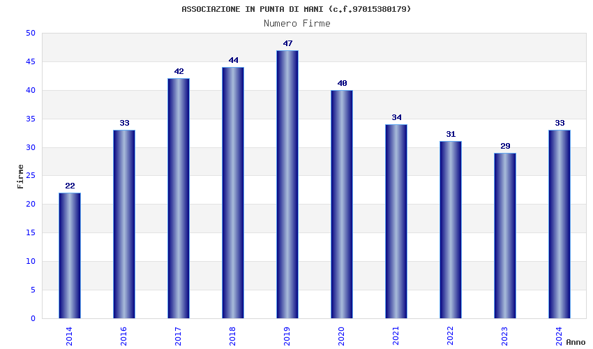 | Anno | Firme | Importi | Media | Naz. | Reg. | Prov. | Comu. |
