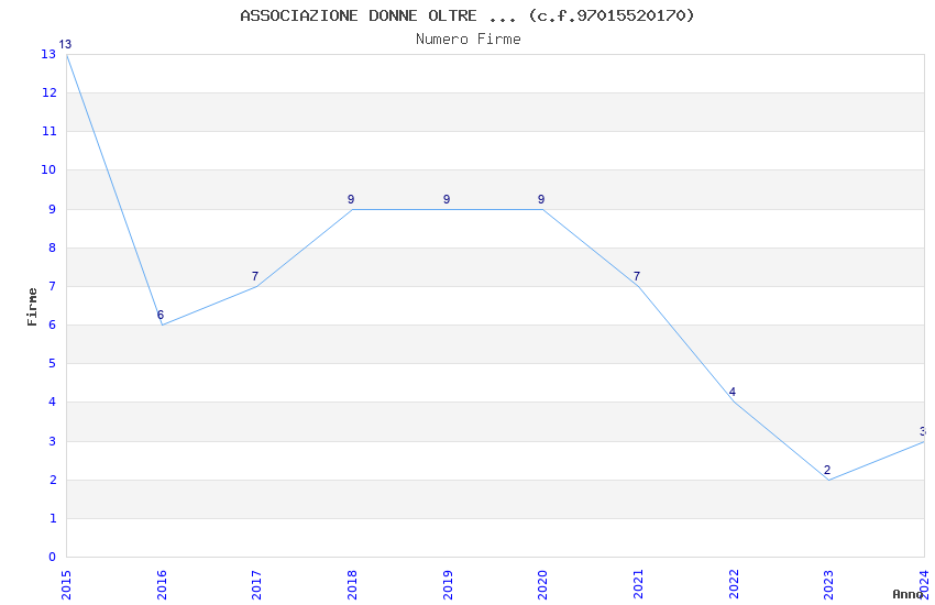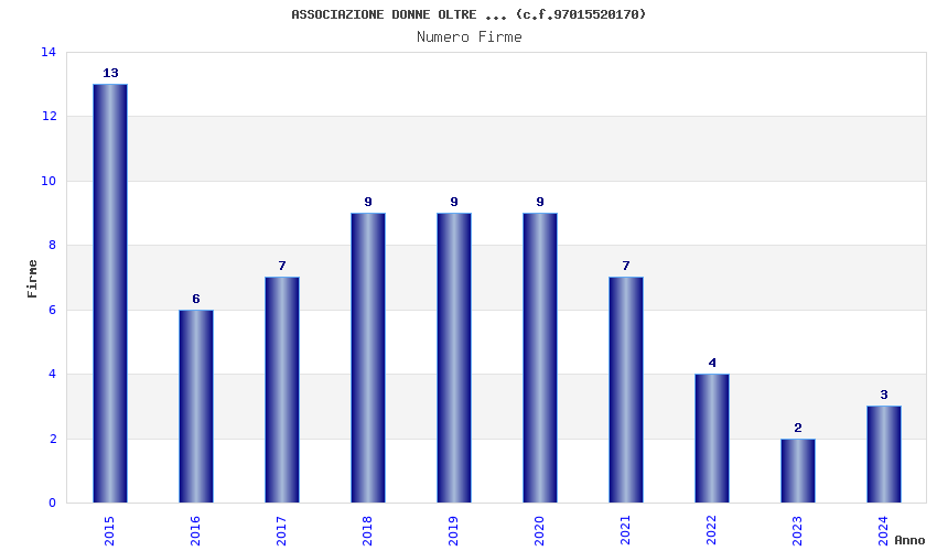 | Anno | Firme | Importi | Media | Naz. | Reg. | Prov. | Comu. |