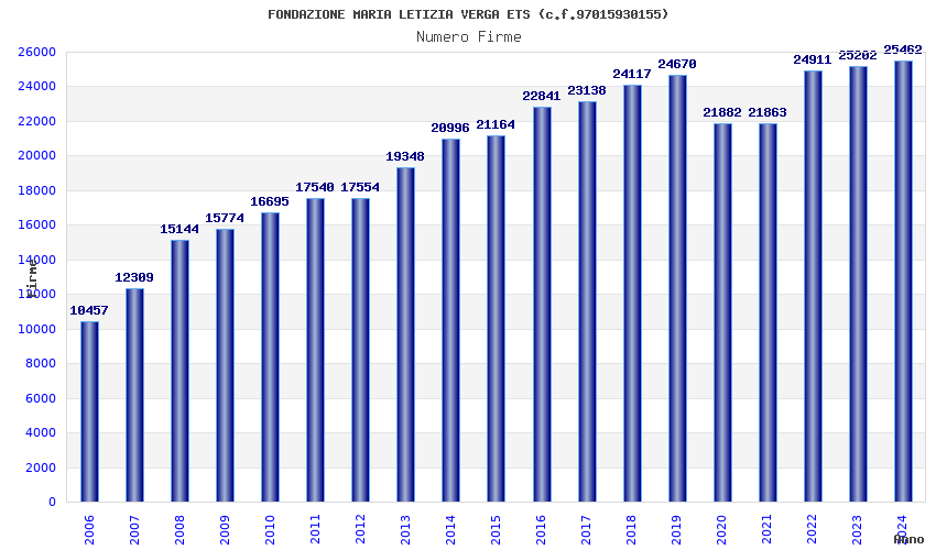 | Anno | Firme | Importi | Media | Naz. | Reg. | Prov. | Comu. |
