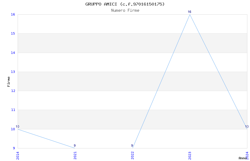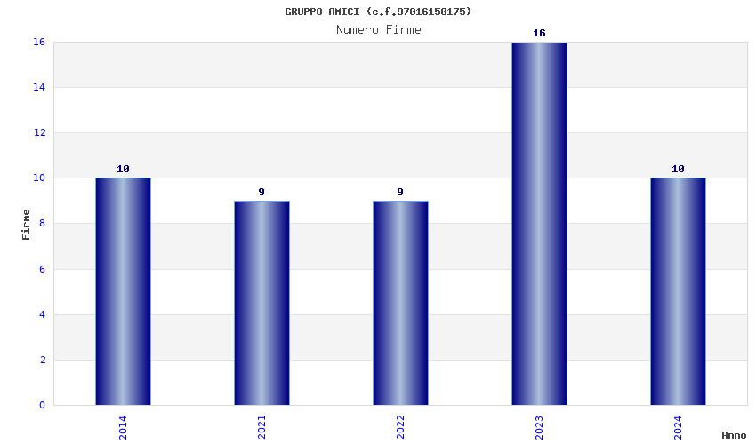 | Anno | Firme | Importi | Media | Naz. | Reg. | Prov. | Comu. |