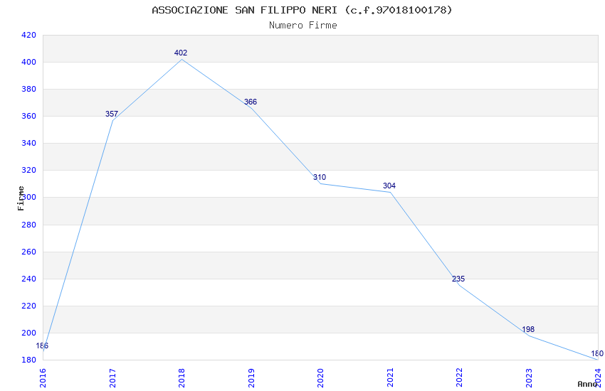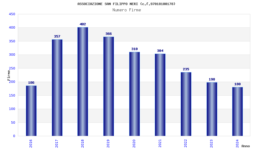 | Anno | Firme | Importi | Media | Naz. | Reg. | Prov. | Comu. |