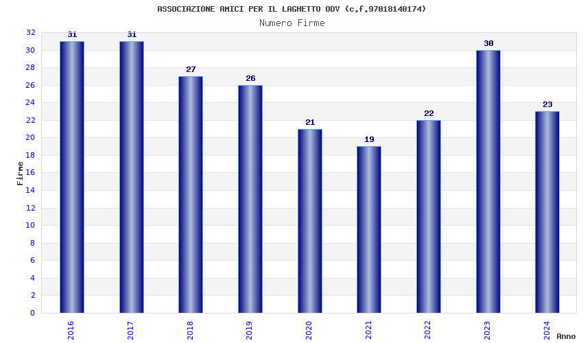 | Anno | Firme | Importi | Media | Naz. | Reg. | Prov. | Comu. |