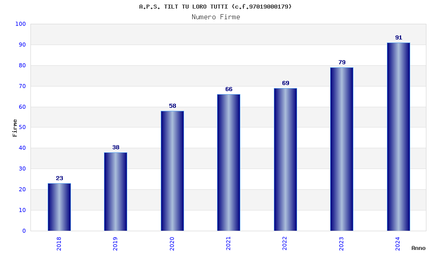 | Anno | Firme | Importi | Media | Naz. | Reg. | Prov. | Comu. |