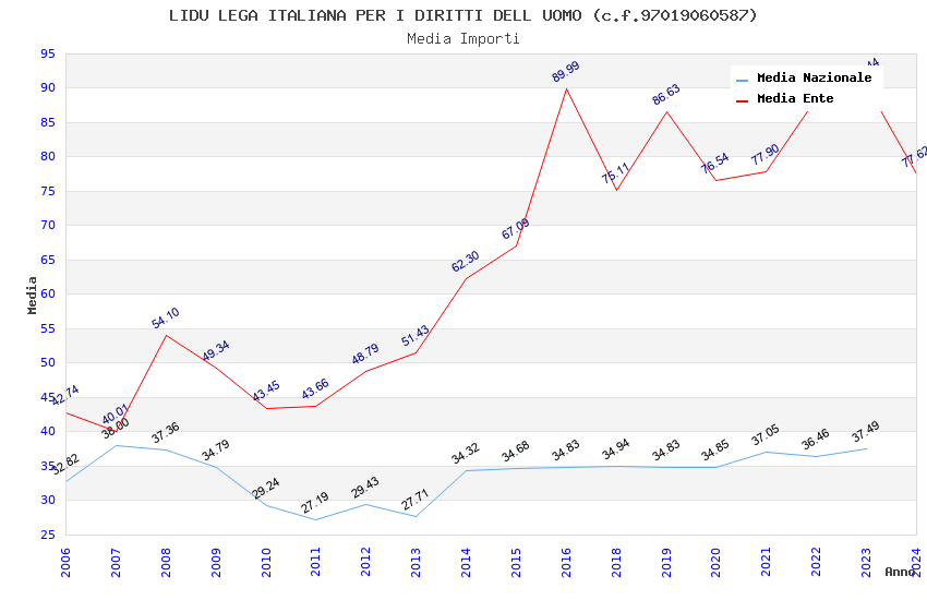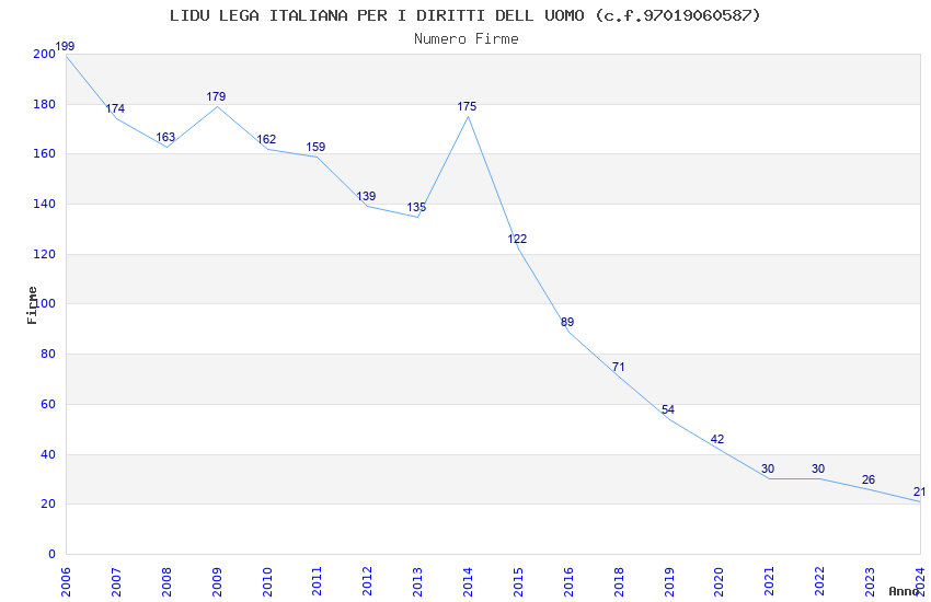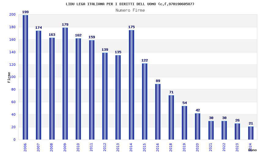 | Anno | Firme | Importi | Media | Naz. | Reg. | Prov. | Comu. |