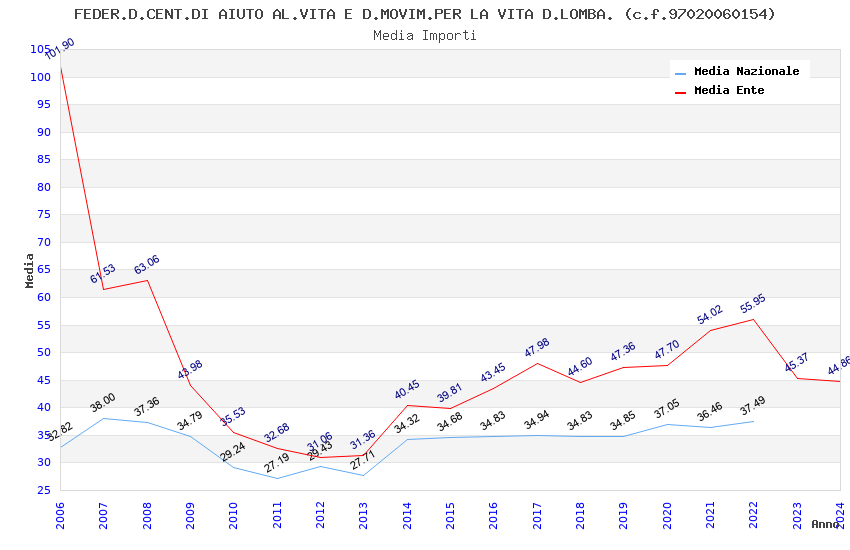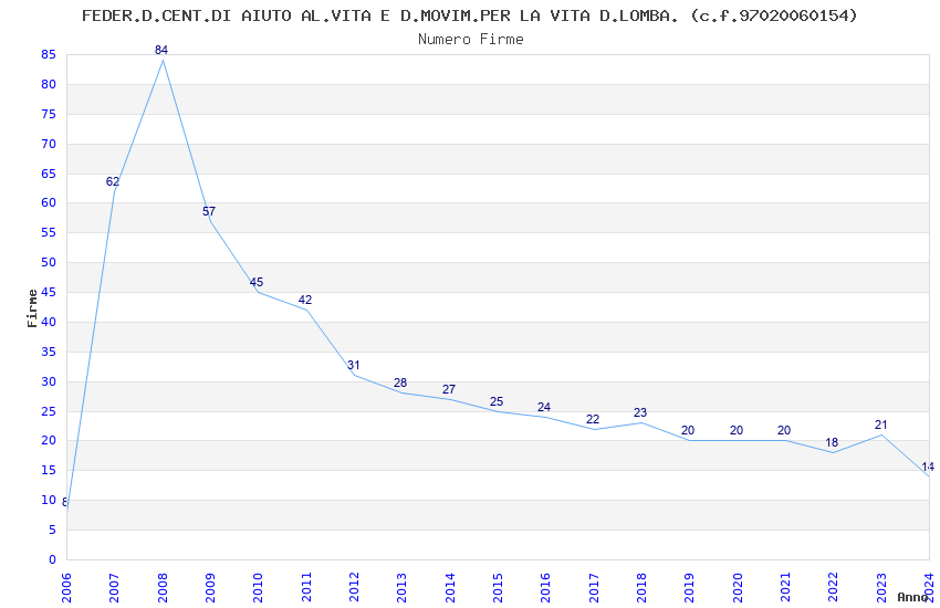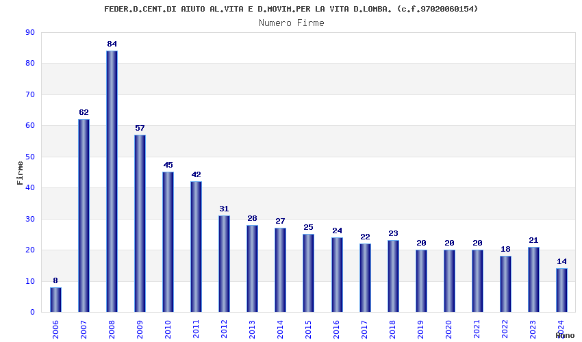 | Anno | Firme | Importi | Media | Naz. | Reg. | Prov. | Comu. |