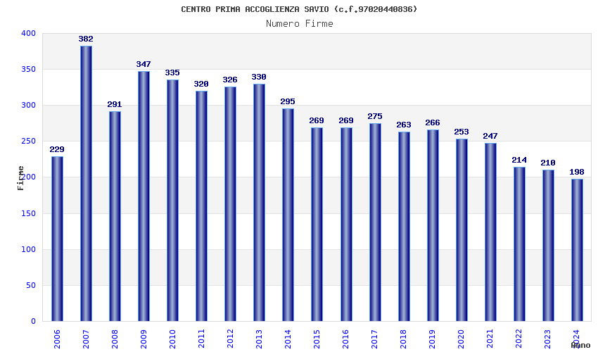 | Anno | Firme | Importi | Media | Naz. | Reg. | Prov. | Comu. |