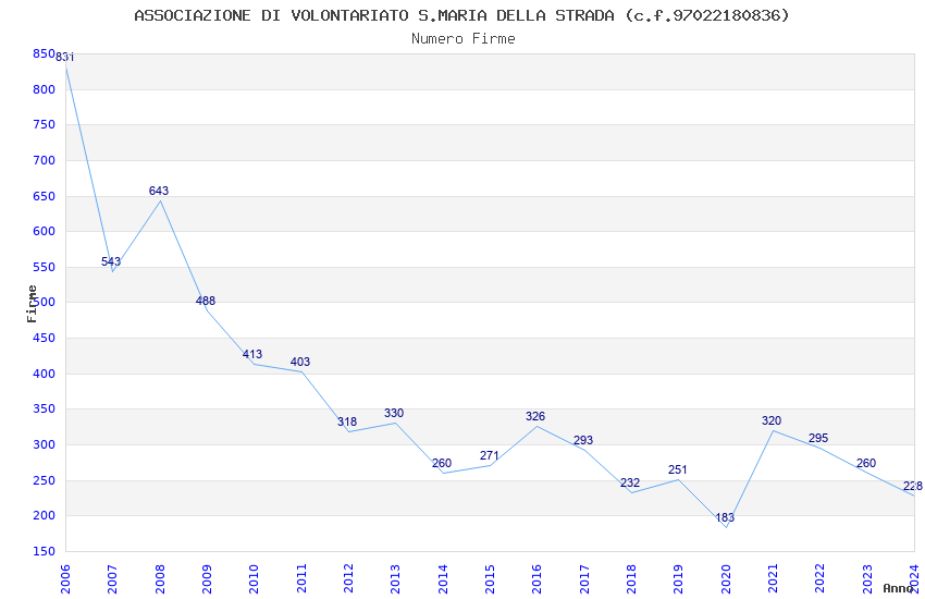 | 2006 | 831 | 20.860,82 | 25,10 | 1.717 | 70 | 8 | 5 |