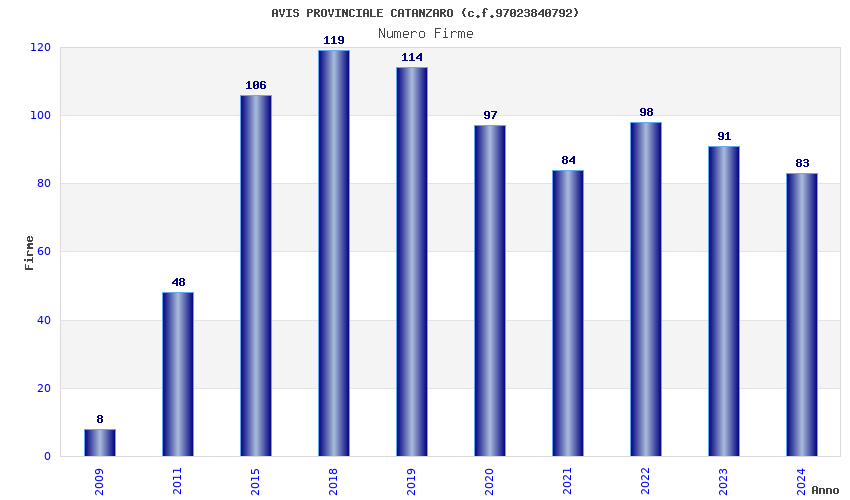 | Anno | Firme | Importi | Media | Naz. | Reg. | Prov. | Comu. |