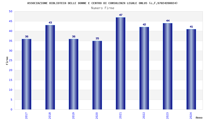 | Anno | Firme | Importi | Media | Naz. | Reg. | Prov. | Comu. |