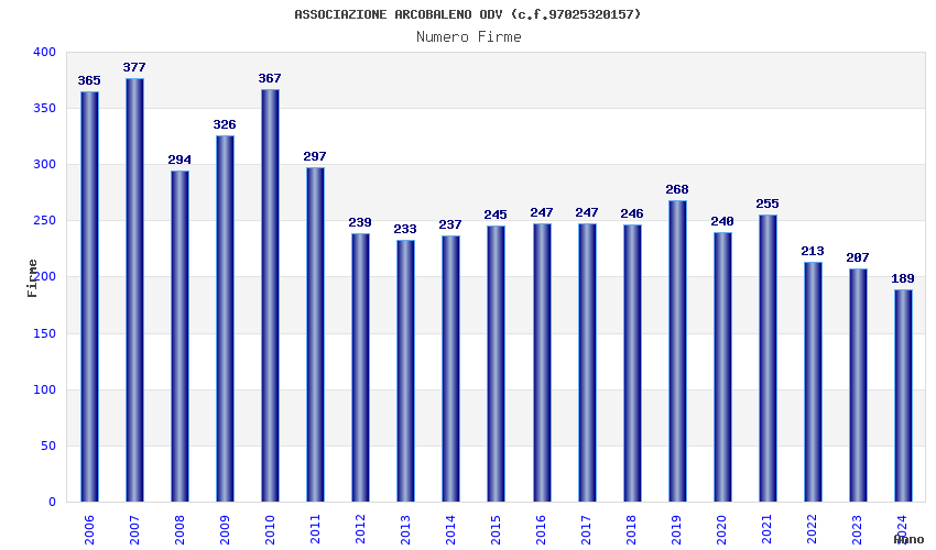 Anno Firme Importi Media Naz. Reg. Prov. Comu.