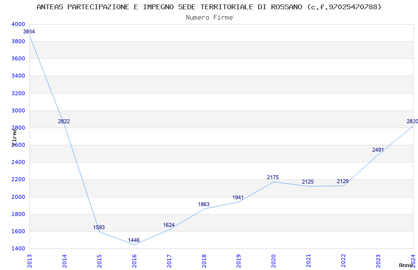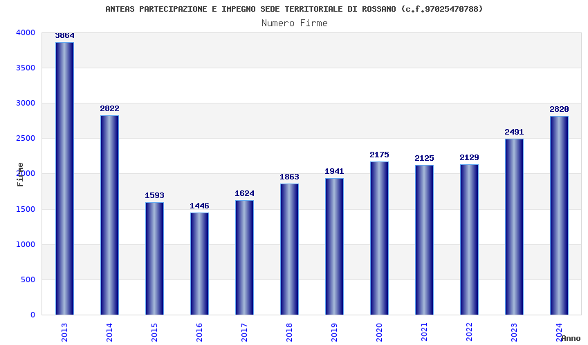 | Anno | Firme | Importi | Media | Naz. | Reg. | Prov. | Comu. |