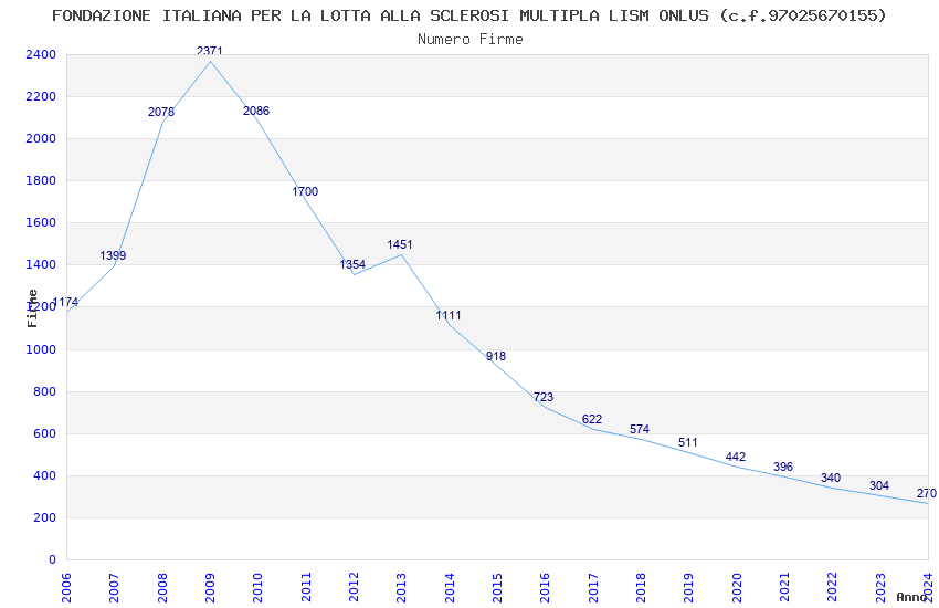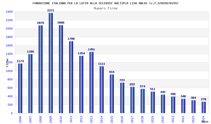 | Anno | Firme | Importi | Media | Naz. | Reg. | Prov. | Comu. |