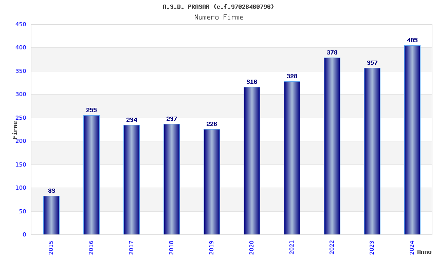 | 2015 | 83 | 1.607,88 | 19,37 | 24.894 | 521 | 111 | 3 |