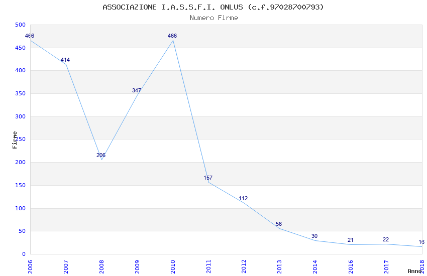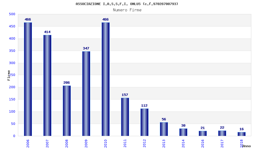 | Anno | Firme | Importi | Media | Naz. | Reg. | Prov. | Comu. |