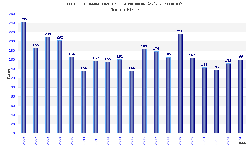 | Anno | Firme | Importi | Media | Naz. | Reg. | Prov. | Comu. |
