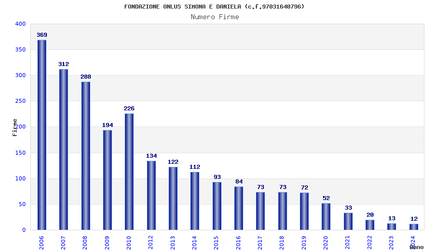 | Anno | Firme | Importi | Media | Naz. | Reg. | Prov. | Comu. |