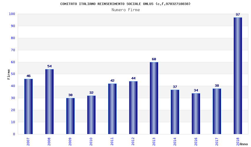 | Anno | Firme | Importi | Media | Naz. | Reg. | Prov. | Comu. |