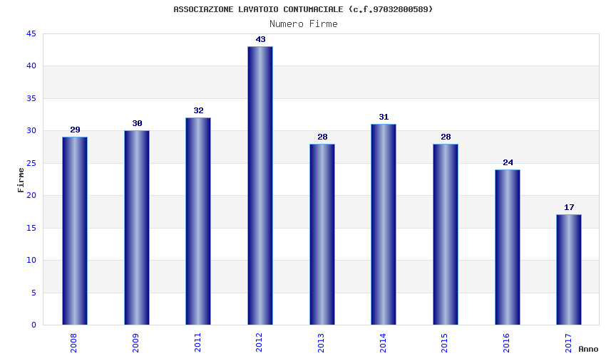 | Anno | Firme | Importi | Media | Naz. | Reg. | Prov. | Comu. |