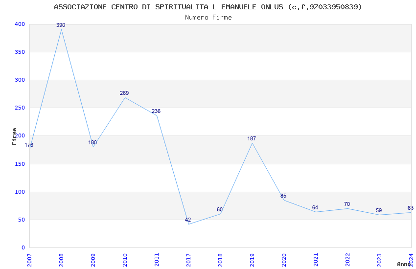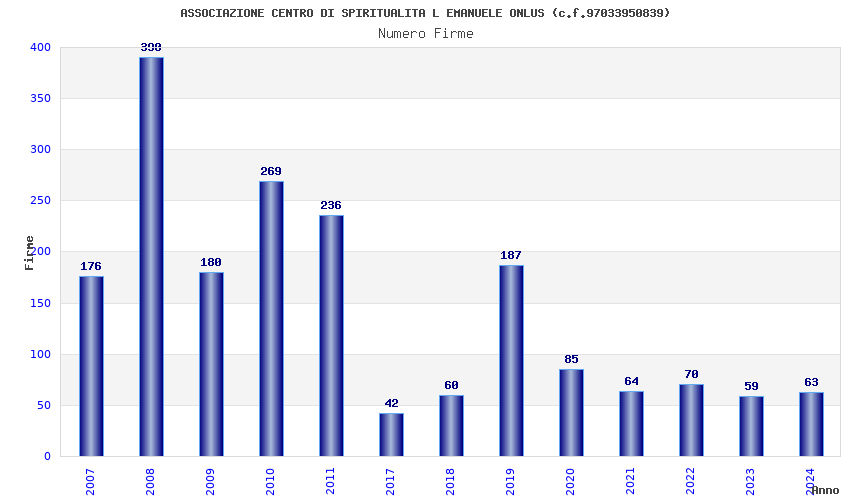 | Anno | Firme | Importi | Media | Naz. | Reg. | Prov. | Comu. |