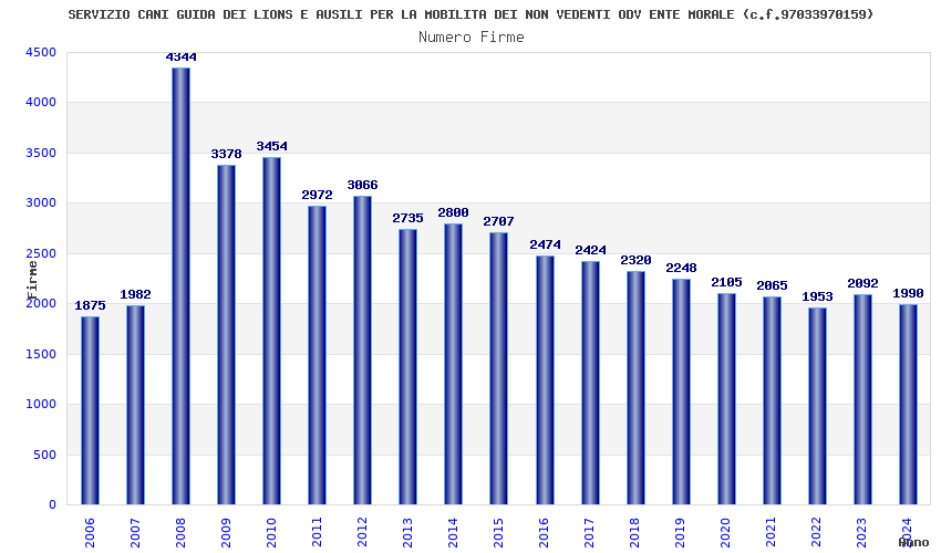 | Anno | Firme | Importi | Media | Naz. | Reg. | Prov. | Comu. |