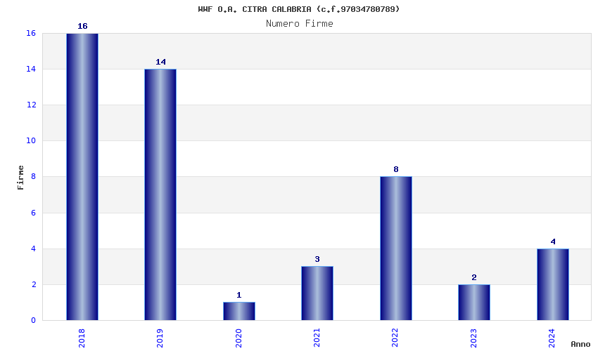 | Anno | Firme | Importi | Media | Naz. | Reg. | Prov. | Comu. |