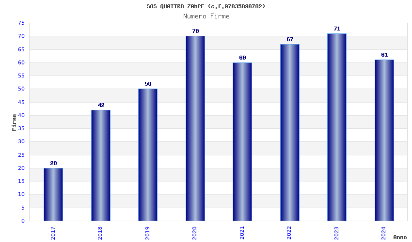 | Anno | Firme | Importi | Media | Naz. | Reg. | Prov. | Comu. |